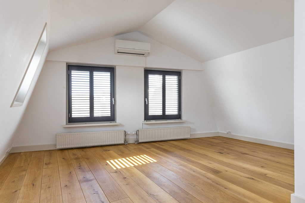 Middels de interne trap bereik je de 4e etage op overloop vanwaar toegang tot beide slaapkamers ( waarvan 1 is voorzien van airco), een wasruimte en de badkamer met toilet, een dubbele wastafel, ligbad met een douche.