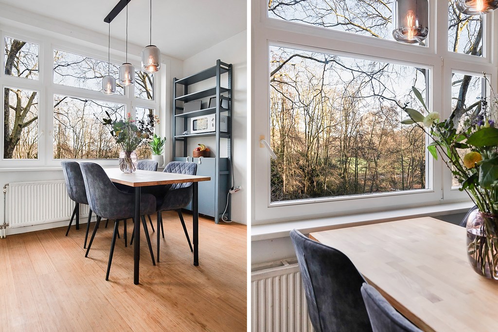 De woning kenmerkt zich door een prettige lichtinval en een aangename leefruimte met vrij uitzicht over het park. De moderne open keuken is in 2023 vernieuwd en uitgerust met hoogwaardige inbouwapparatuur, waaronder een 5-pits gaskooktoestel, Quooker, vaatwasser en oven — ideaal voor wie graag kookt en gezelligheid aan tafel waardeert.