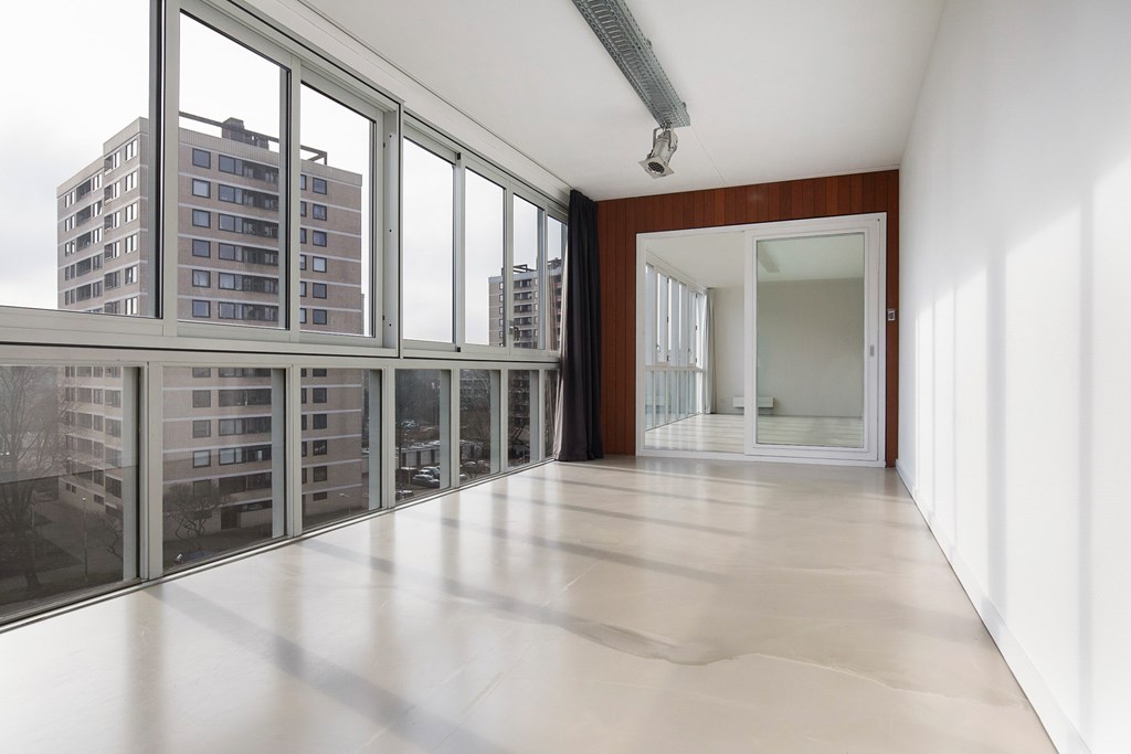 De woonkamer is zonder twijfel het hart van de woning: uitzonderlijk ruim, bijzonder licht en voorzien van een volledige raampartij over de gehele breedte. Hier geniet u dagelijks van een panoramisch uitzicht over de Sloterplas.