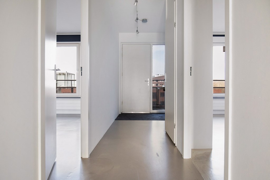 Via de lift bereikt u de vierde verdieping. Het appartement ligt aan de galerij en biedt bij binnenkomst een ruime hal met toegang tot alle vertrekken.