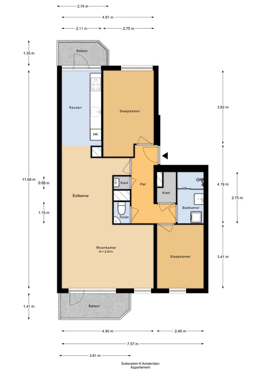 - Aantal kamers 3 kamers (2 slaapkamers)