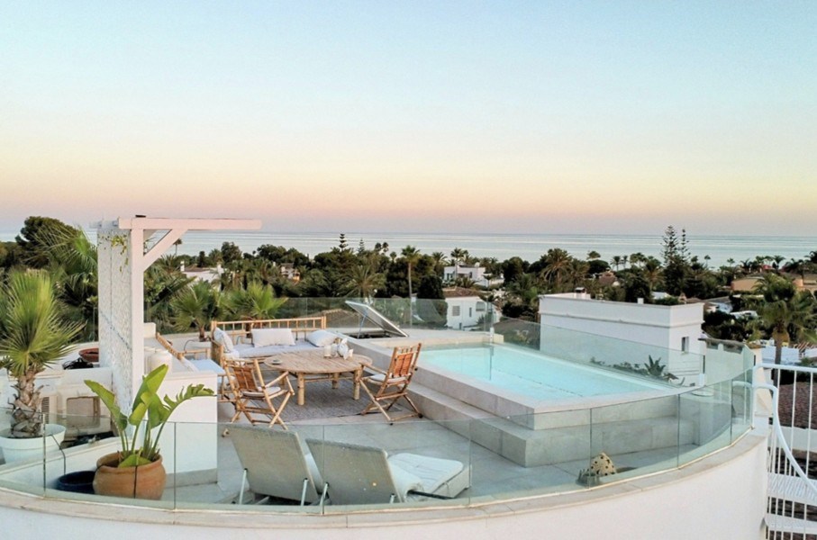 Deze iconische villa ligt in de privé-urbanisatie Marbesa, dicht bij het strand, aan de oostkant van Marbella. Het ligt op 400 meter loopafstand of 10 minuten lopen van de Middellandse Zee en het strand, op 1,5 km van het strand en de beschermde duinen van Cabopino en op 1,9 km van de hotels Marriot en Don Carlos en Nikki Beach Marbella. Marbesa is een rustige en prestigieuze wijk die bekend staat om zijn prachtige kustlijn en de nabijheid van Marbella.