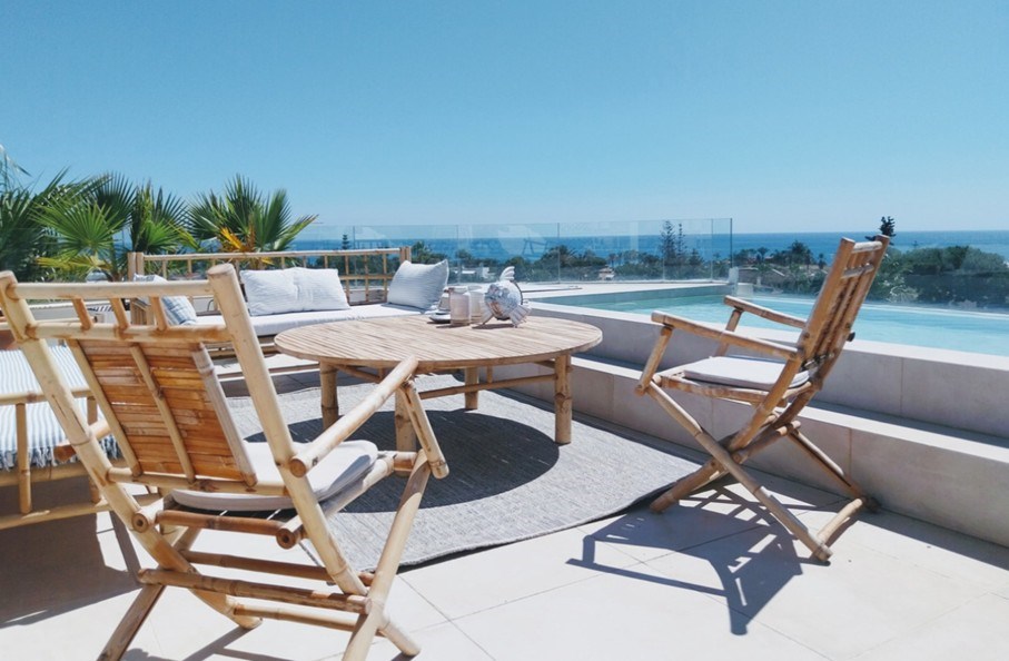 De villa heeft een prachtig dakterras met zwembad en uitzicht over de kust naar Gibraltar en Afrika. Het is ideaal voor het organiseren van feesten of gewoon om te genieten van het adembenemende uitzicht. De eerste verdieping, waar u de woonkamer met open keuken vindt, biedt ook een fantastisch uitzicht op zee. Op de begane grond, die uitkijkt op de tuin en het infinity zwembad, zijn er 2 slaapkamers en 2 badkamers. In de semi-kelder is er een 3e slaapkamer en de garage met een elektronische poort met afstandsbediening. Alle slaapkamers hebben luiken, airconditioning en verwarming, op elektriciteit. Zowel het zwembad op het dak als het zwembad in de tuin zijn verwarmd.
