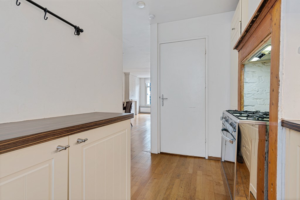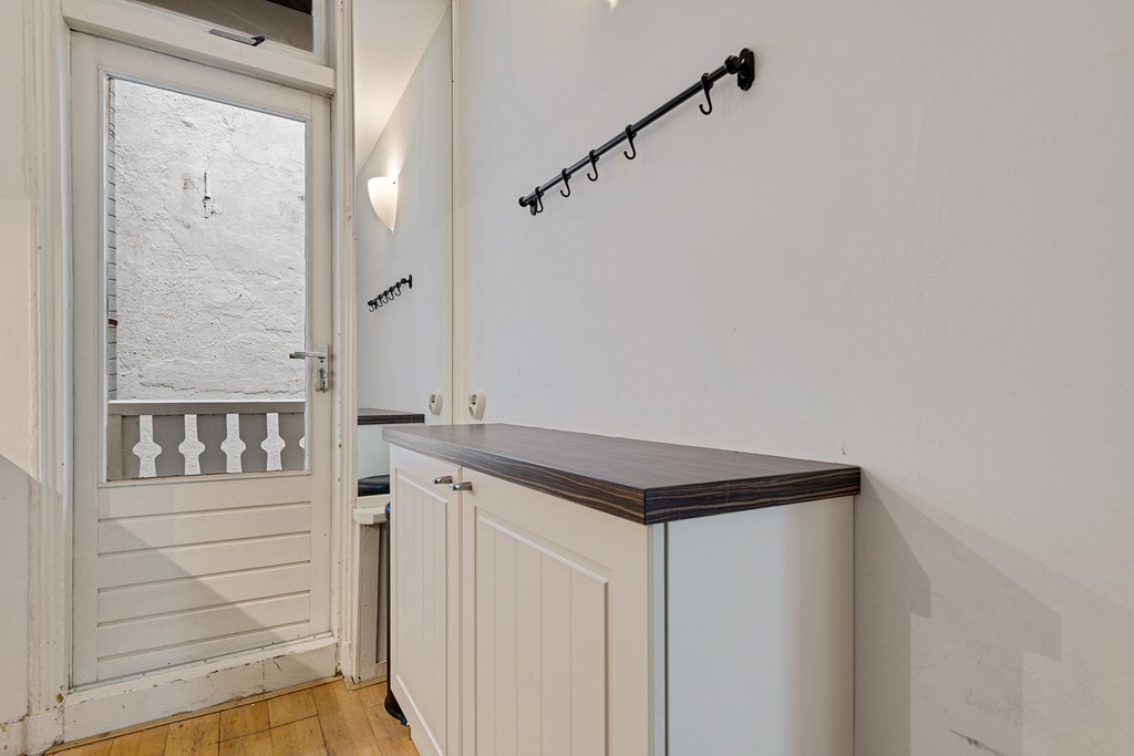 Via het verzorgde gemeenschappelijke trappenhuis bereik je de entree van het appartement op de tweede verdieping. Bij binnenkomst kom je in de lichte woonkamer met een charmant Frans balkon op het westen, waar het heerlijk genieten is van de middag- en avondzon.