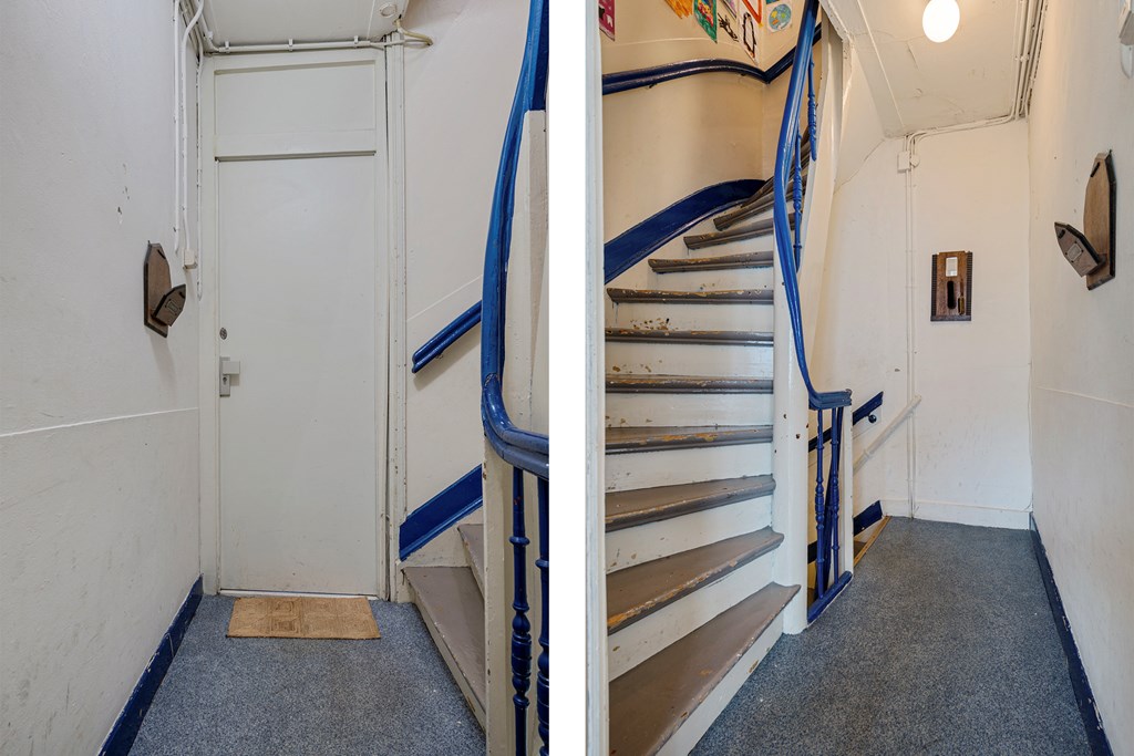 The apartment is fitted with wooden window frames and double glazing at both the front and rear. While modernization may be desired, this home offers excellent potential to be transformed into a stylish and comfortable city apartment, entirely to your own taste.